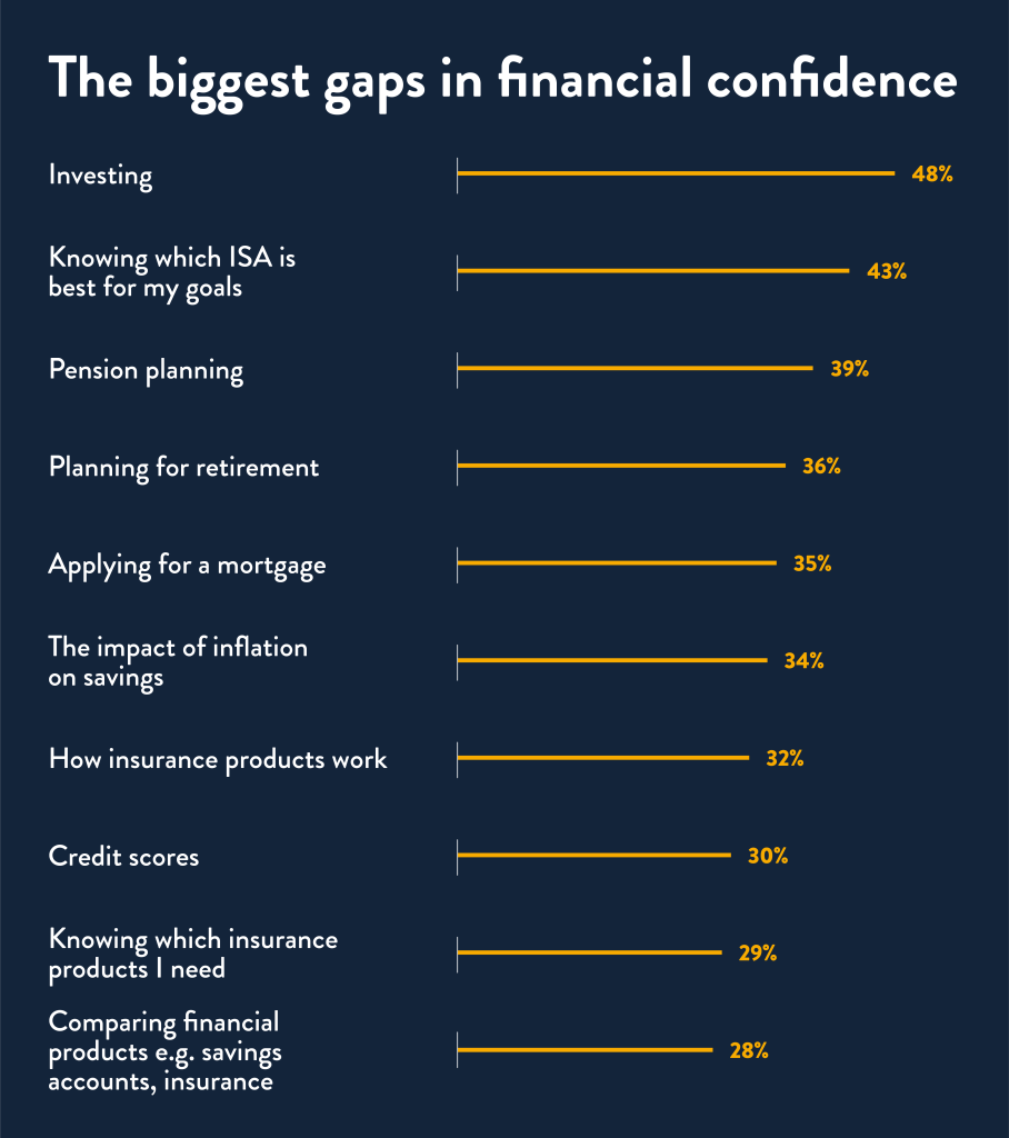 Among 18-24 year olds, more than half said they aren’t confident in choosing the right ISA (55%), understanding pension planning (56%), or how insurance products work (53%). Worryingly, 47% also said they aren’t confident in their knowledge of the impact of inflation on their savings, which could mean many in this age group might not be taking steps to protect or grow their savings effectively.